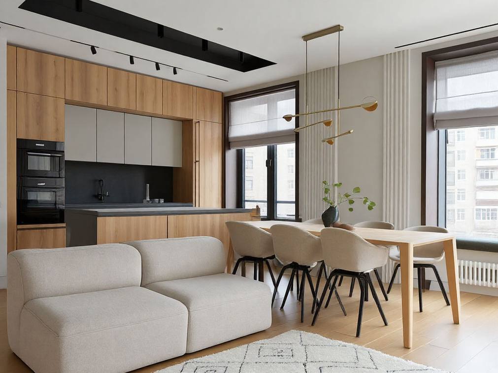 Инженерные элементы остаются незаметными, сохраняя визуальную чистоту пространства